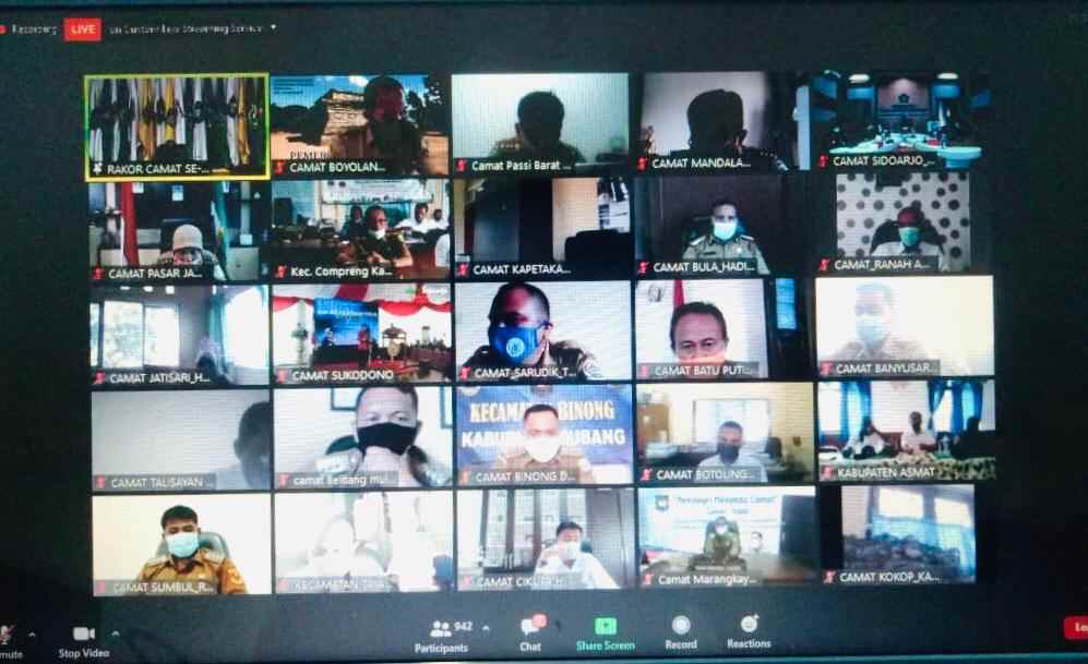 BOLMONG– 15 camat di Kabupaten Bolaang Mongondow (Bolmong) mengikuti kegiatan Menteri Dalam Negeri (Mendagri) Tito Karnavian menyapa Camat se-Indonesia melalui video conference (Vidcon), Rabu (23/9/2020).