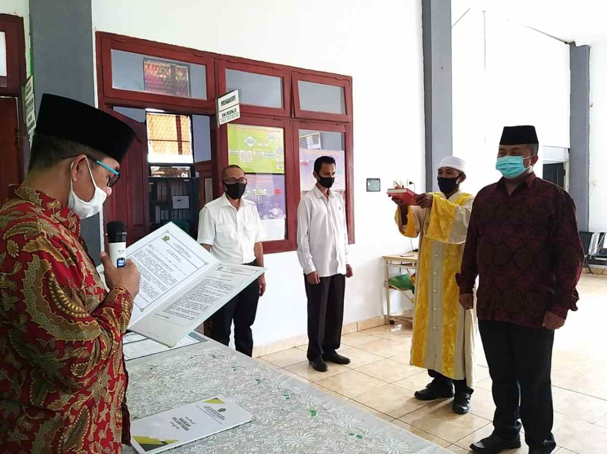 Pelantikan digelar di Aula Kantor Kemenag Bolmong dihadiri Kasubag TU, Rohaniwan, Saksi, dan sejumlah ASN yang sedang melakukan kerja dari kantor (Work from office).