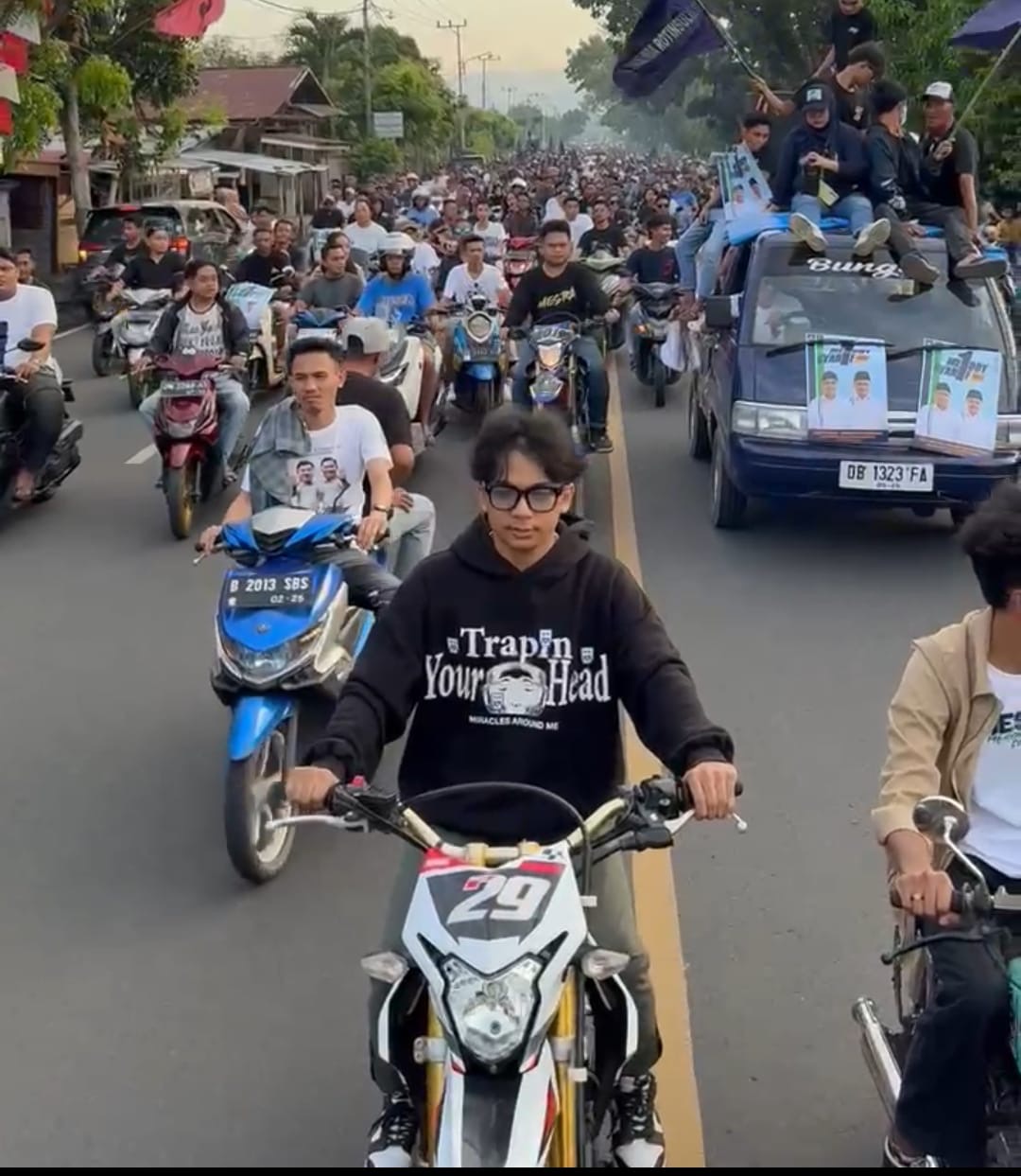 Dengan semangat kebersamaan, mereka berkeliling kota sebagai bentuk dukungan penuh kepada pasangan YSK Victory.