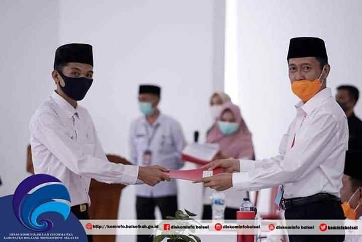BOLSEL – Sebanyak 45 Pegawai Negeri Sipil (PNS), mengikuti pelantikan dan pengambilan sumpah yang dilaksanakan di Aula Lantai III Kantor Bupati Bolsel Panango, Rabu (01/07/2020).