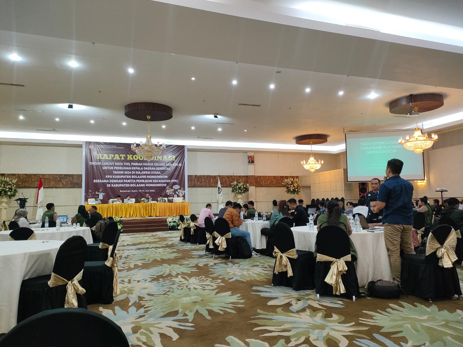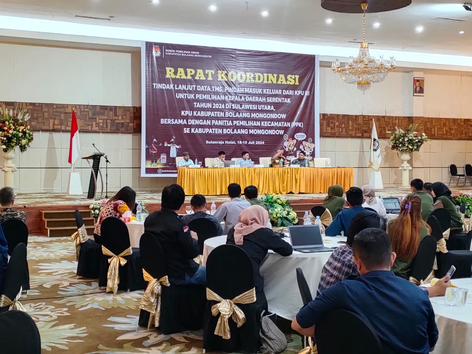 KRONIK TOTABUAN, Bolmong – Komisi Pemilihan Umum (KPU) Kabupaten Bolaang Mongondow (Bolmong), menggelar Rapat koordinasi (Rakor) tindak lanjut data TMS pindah masuk keluar dari KPU RI untuk Pemilihan Kepala Daerah (Pilkada) serentak tahun 2024, bertempat di Sutanraja Hotel Kotamobagu, Kamis (18/7/2024).
