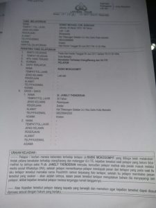 Berdasarkan keterangan pelapor yang termuat dalam laporan polisi (LP) Nomor: LP/158/VI/2017/SULUT/Polresta Mdo, kejadian tersebut terjadi Kamis (29/6) dini hari sekira pukul 01.00 Wita.