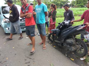 Penuturan saksi mata, korban sekira pukul 15.00 Wita melaju kencang dengan sepeda motornya Honda Vario DB 2803 KO dari arah Motoboi Kecil. Tepat di depan gudang Bulog, korban hilang kendali dan menabrak mobil Avanza DB 4926 AG.