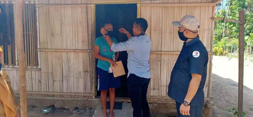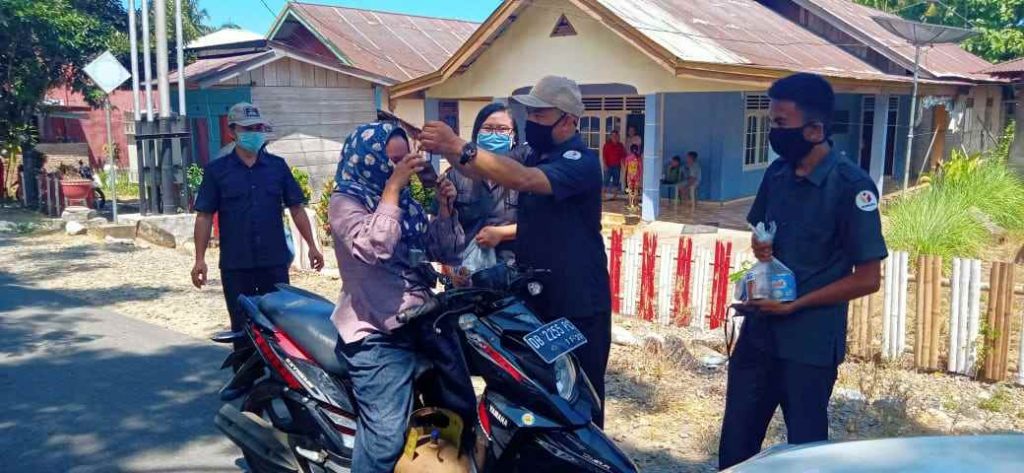 Pembagian masker digelar di Desa Tolutu Kecamatan Tomini Kabupaten Bolaang Mongondow Selatan (Bolsel), dipimpin langsung oleh Plh Ketua Bawaslu Kifly Y Malonda dan diikuti seluruh staf.
