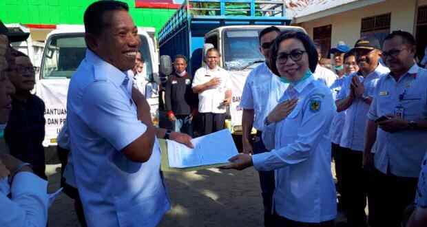 Bantuan tersebut diterima langsung Bupati dan Wakil Bupati Bolmut, Depri Pontoh dan Amin Lasena.