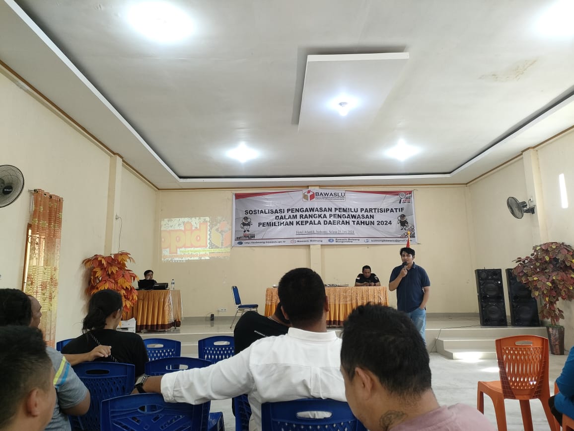 KRONIK TOTABUAN, Bolmong – Badan Pengawas Pemilu (Bawaslu), Kabupaten Bolaang Mongondow (Bolmong), menggelar sosialisasi pengawasan pemilu partisipatif dalam rangka pengawasan Pemilihan Kepala Daerah (Pilkada) Tahun 2024, Selasa (25/6/2024).