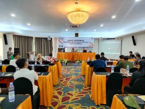 KRONIK TOTABUAN, Politik – Bawaslu Kota Kotamobagu menggelar Rapat Koordinasi (Rakor) pengawasan logistik pemilu tahun 2024, di Sutan Raja Hotel Kotamobagu, Kamis (8/2/2024).