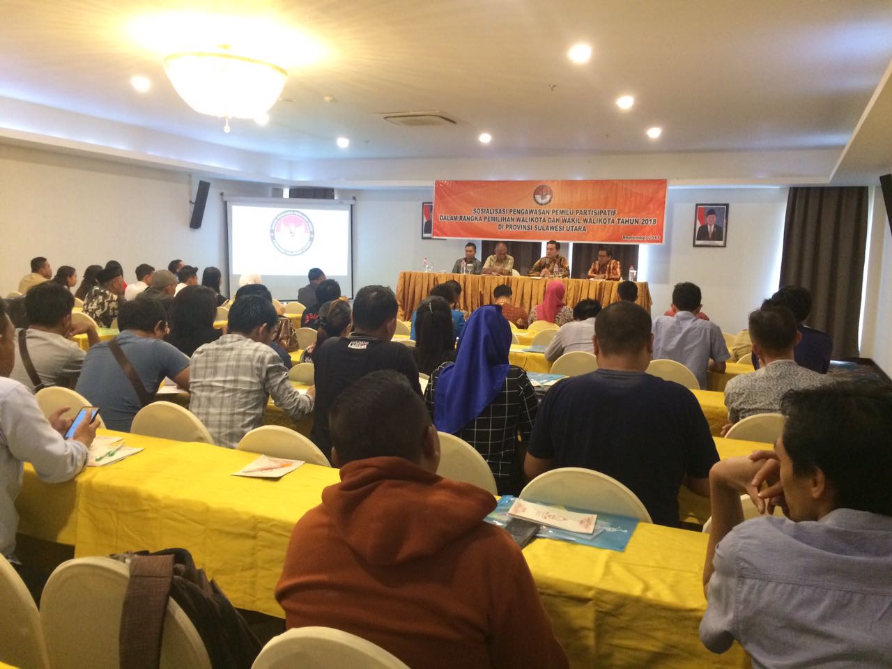 Pimpinan Bawaslu Sulut Jhony Suak dan Samsurizal Musa hadir langsung memberikan materi sosialisasi. Asisten II Pemkot Kotamobagu Gunawan Damopolii hadir mewakili walikota. Ketua Panwaslu Kotamobagu Musly Lewu Mokoginta dan dua pimpinan Herdy Dayoh serta Amaludin Bahansubu ikut mendampingi.