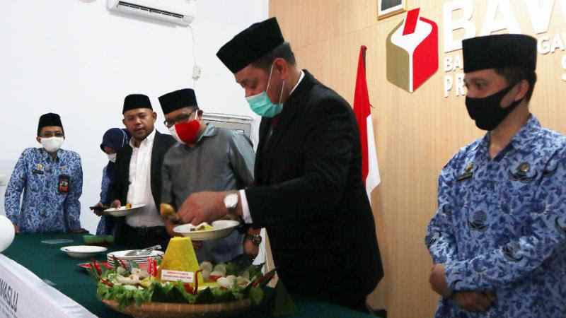 Usai upacara, keluarga besar Bawaslu Sulut melakukan doa bersama dan pemotongan tumpeng. (mon)