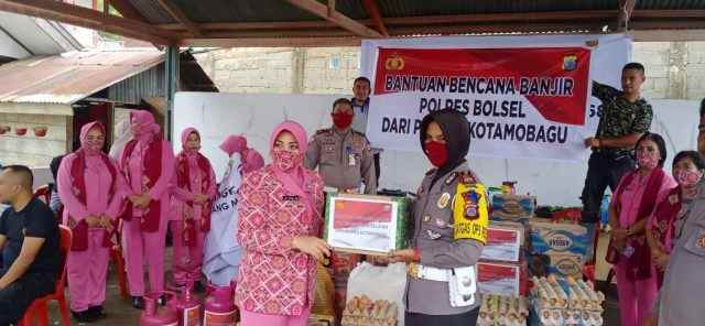 Kapolres Kotamobagu AKBP Prasetya Sejati, SIK melalui Kasubbag Humas Iptu Rusman M Saleh, SE menyampaikan bahwa sejumlah bantuan tersebut berupa kebuthan makanan dan logistik lain seperti gas LPG.