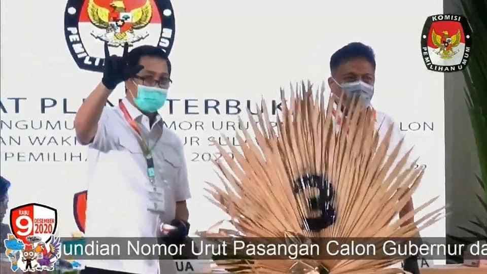 MANADO– KPU Provinsi Sulawesi Utara (Sulut) menggelar pleno pengundian nomor urut bagi pasangan calon (Paslon) Gubernur dan Wakil Gubernur Sulut, Kamis (24/9/2020).