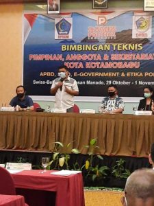KOTAMOBAGU– Bimbingan teknis (Bimtek) penyusunan APBD 2021, SIPD, e-Government dan etika politik yang diikuti 25 anggota DPRD Kotamobagu sejak 29 Oktober lalu di Hotel Swiss Bell Maleosan Manado, resmi ditutup oleh Ketua DPRD Meiddy Makalalag, Minggu (1/11/2020).