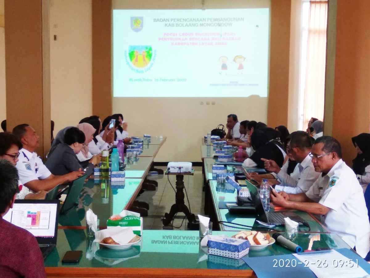 Sebagai upaya menuju KLA, Badan Perencanaan Pembangunan Daerah (Bappeda) Bolmong menggelar Focus Group Discussion (FGD) tahap awal Rencana Aksi Daerah (RAD) KLA, Rabu (26/2/2020), di Kantor Bappeda Bolmong.