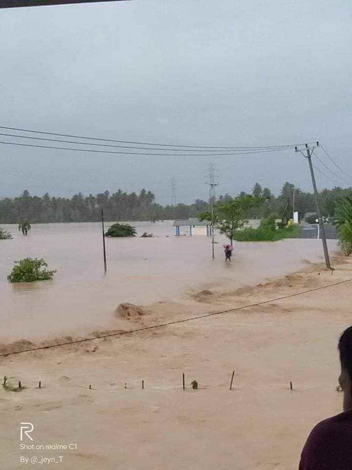 Ketinggian air mencapai lutut orang dewasa menutupi badan jalan sepanjang 1 kilometer. Akibatnya, pengendara tidak bisa melihat badan jalan untuk dilwati kendaraan.