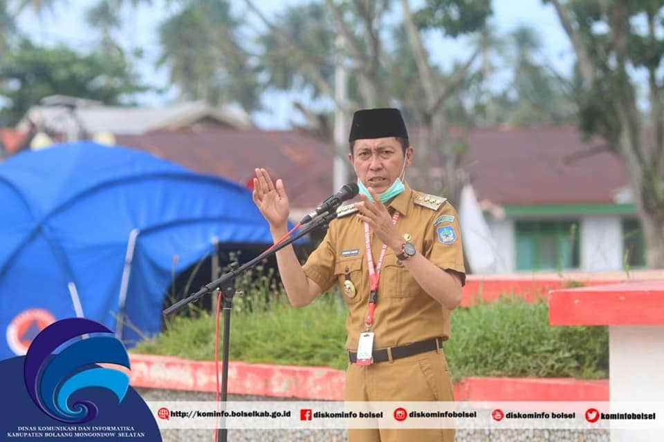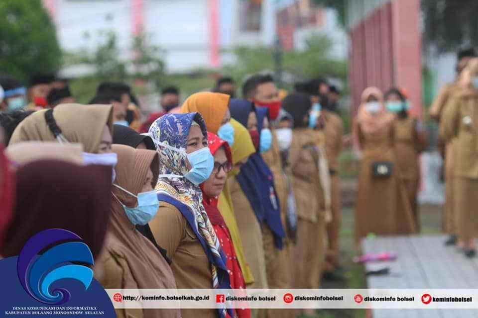 BOLSEL – Bupati Bolaang Mongondow Selatan Hi Iskandar Kamaru SPt didampingi Sekda Marzansius Arvan Ohy SSTP, Senin (27/7/2020), menggelar apel pagi bagi Aparatur Sipil Negara (ASN) dilingkup Pemda Bolsel.