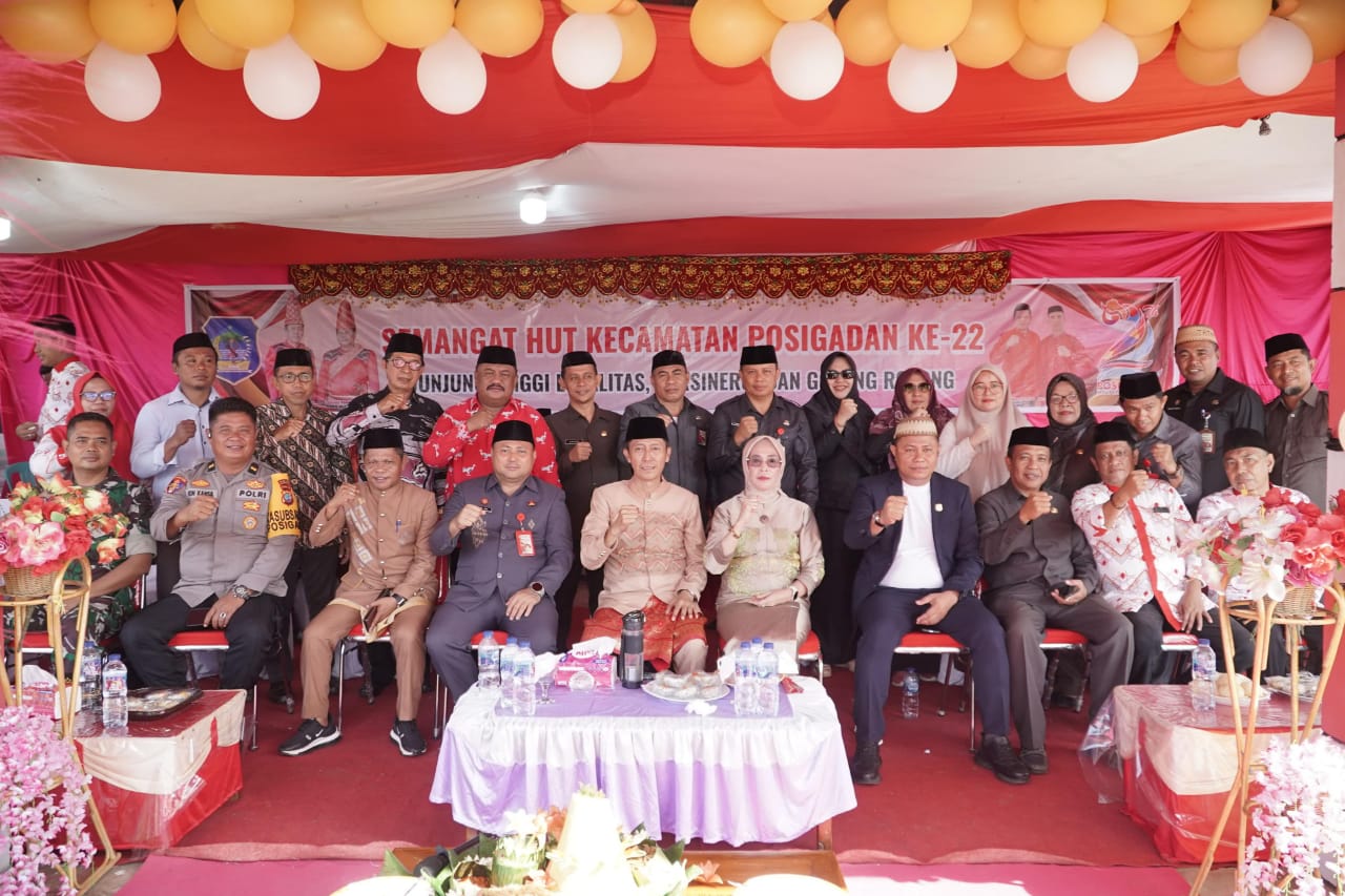 “Selamat memperingati Hari Ulang Tahun Kecamatan Posigadan ke-22. Mari terus kita berpartisipasi dalam pembangunan dan memajukan wilayah yang kita sama-sama cintai ini. Terima kasih kepada jajaran pemerintah kecamatan, jajaran PKK serta seluruh lapisan masyarakat Posigadan,” ujar Bupati.