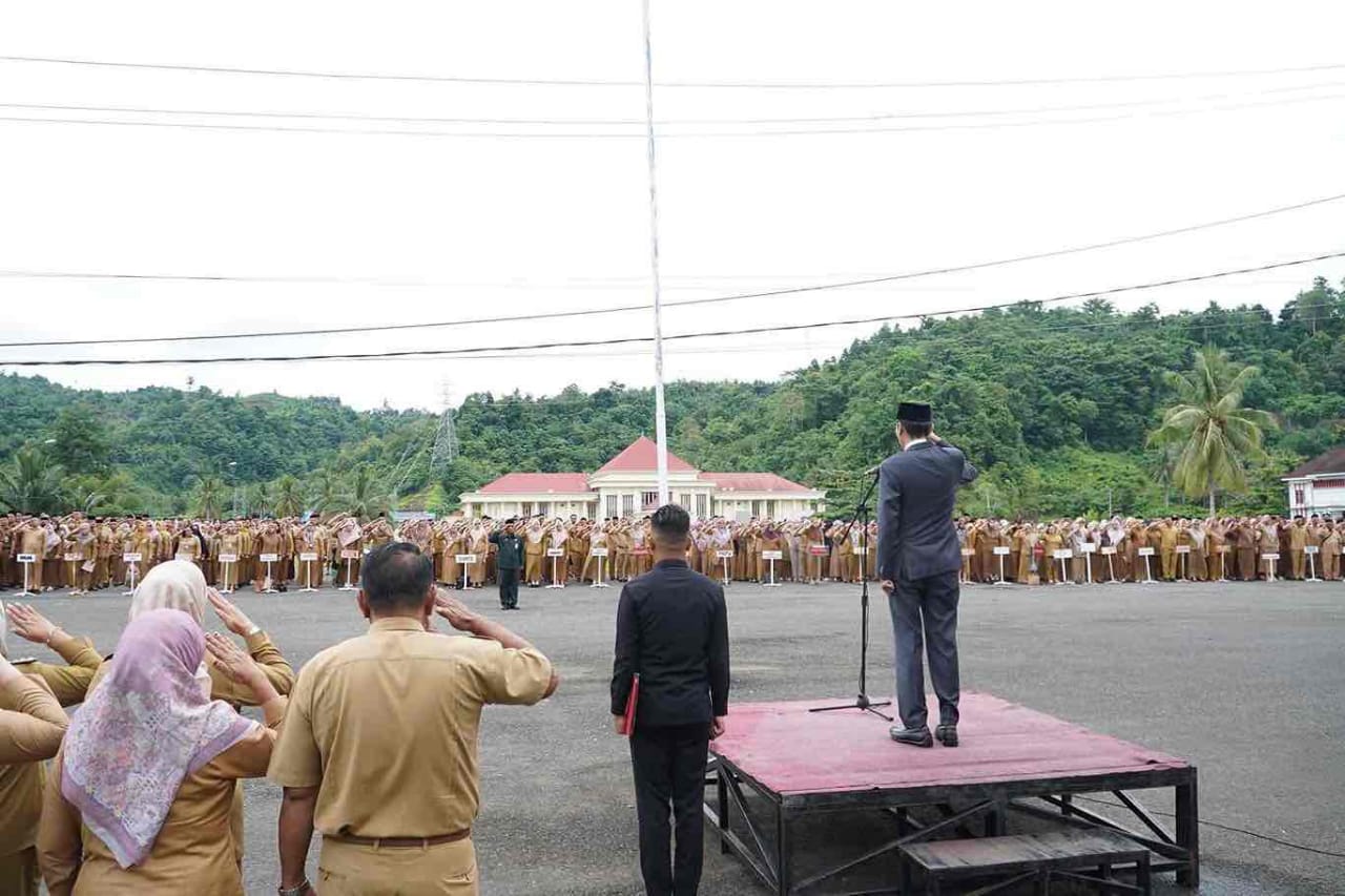 Upacara tersebut dipimpin langsung Bupati Hi. Iskandar Kamaru SPt, MSi sebagai inspektur upacara dan dihadiri unsur Forkopimda, Sekda Marzanzius Arvan Ohy bersama jajaran pejabat Tinggi Pratama, Administrator, Pengawas, para Camat, Sangadi, Kepsek, Kapus serta jajaran ASN dan THL.