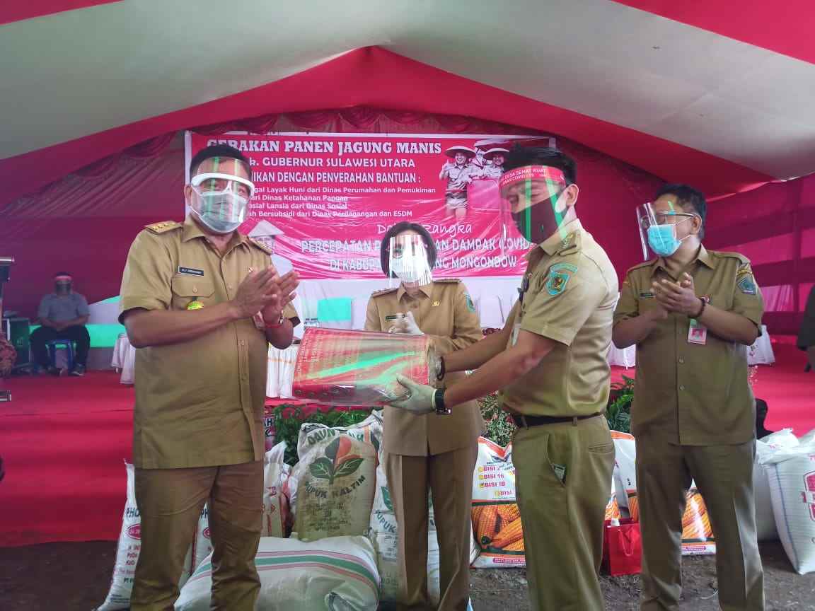 Gubernur beserta rombongan juga melakukan panen jagung manis didampingi oleh Bupati Bolmong, serta menanam padi perdana. (len)