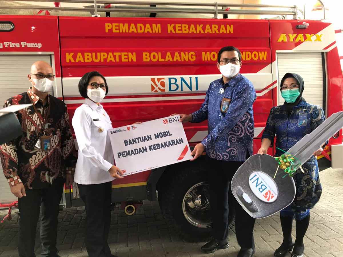 Di agenda selanjutnya, Bupati Yasti juga menerima bantuan 1 unit mobil Pemadam Kebakaran (Damkar) oleh PT. Bank Negra Indonesia (BNI 46) region Manado.