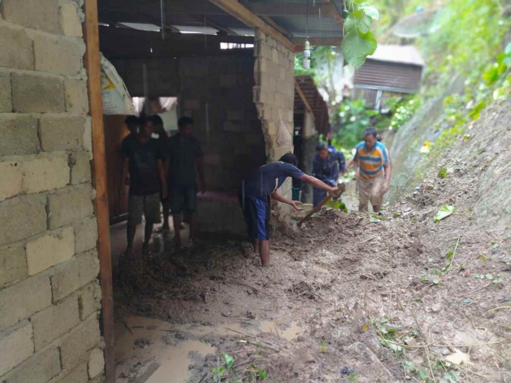 “Kejadian sekitar pukul 06.30 Wita. Saya mendapat kabar dari masyarakat ada beberapa rumah warga terendam banjir dan akibat tanah yang longsor 1 rumah milik Rolin Podu, rusak karena longsor,” ujar Noval.