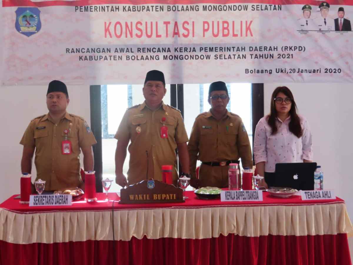 “Forum konsultasi ini ditujukan untuk menjaring aspirasi masyarakat dan para pemangku kepentingan yang akan dibahas bersama kepala perangkat daerah dengan tujuan untuk memperoleh beragam masukan terhadap sasaran prioritas pembangunan bolsel tahun 2021,” jelas Deddy.