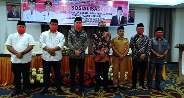 BOLSEL – Bupati Bolaang Mongondow Selatan (Bolsel) Hi Iskandar Kamaru SPt, membuka kegiatan Sosialisasi Produk Hukum dalam upaya pencegahan Tindak Pidana Korupsi dalam penggunaan Dana desa (Dandes). Kegitan ini dihadiri juga oleh pihak Kejaksaan Negeri (Kejari) Kotamobagu bertempat di Sutan Raja Hotel Kotamobagu, Senin (31/8/2020) malam.