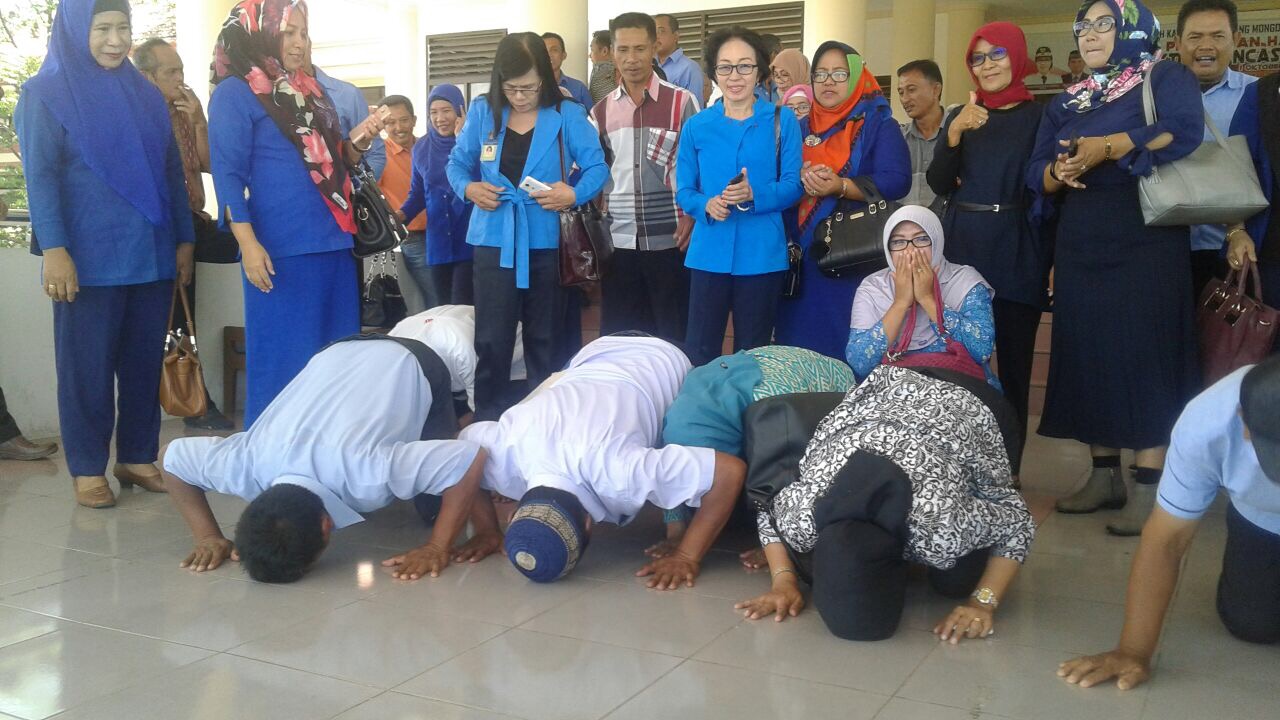 Karyawan PDAM sujud syukur di halaman kantor Bupati Bolmong.