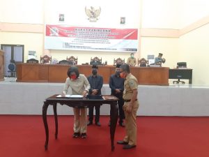 Lima Perda ditetapkan yakni Perda tentang APBD 2021, serta empat Perda inisiatif DPRD.Yaitu Perda tentang Pajak Sarang Burung Walet, Perda Irigasi, Perda Pengendalian dan Penanggulangan Rabies, dan PerdaPelestarian Nilai Kearifan Lokal Serta Penggunaan Pakaian dan Bahasa Daerah.
