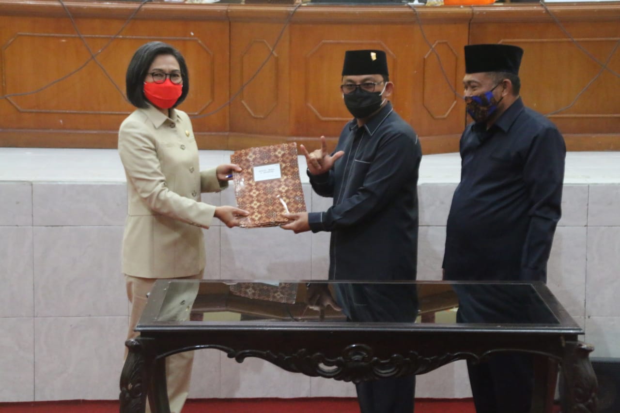 Lima Perda ditetapkan yakni Perda tentang APBD 2021, serta empat Perda inisiatif DPRD.Yaitu Perda tentang Pajak Sarang Burung Walet, Perda Irigasi, Perda Pengendalian dan Penanggulangan Rabies, dan PerdaPelestarian Nilai Kearifan Lokal Serta Penggunaan Pakaian dan Bahasa Daerah.
