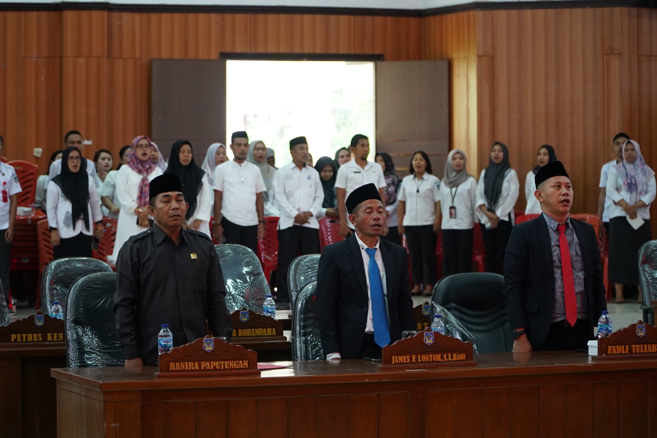 Rapat paripurna dipimpin langsung Ketua DPRD Bolsel Ir. Ariffin Olii dan dihadiri Bupati Hi.Iskandar Kamaru SP,t,MSi, Sekda Marzanzius Arvan Ohy SSTP, MAP, para Asisten, Staf Ahli dan Staf Khusus, Pimpinan PD, para Camat dan Sangadi serta jajaran ASN di lingkup Pemkab Bolsel.
