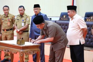 KOTAMOBAGU – Ketua DPRD Kota Kotamobagu, Meiddy Makalalag,ST memimpin langsung rapat paripurna Pembicaraan Tingkat II pengambilan persetujuan atas Rancangan Peraturan Daerah (Ranperda) tentang Laporan keterangan pertanggungjawaban (LKPJ) APBD Tahun Anggaran 2023.