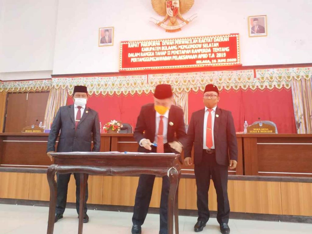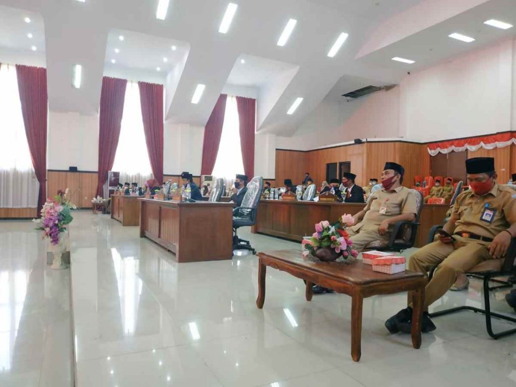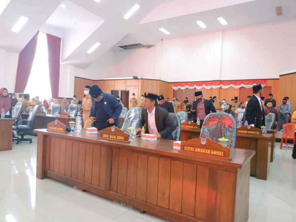 Paripurna dalam rangka penetapan rancangan peraturan daerah (Ranperda) pertanggungjawaban pelaksanaan anggaran pendapatan dan belanja daerah (APBD) tahun 2019 menjadi peraturan daerah (Perda), dipimpin langsung Ketua DPRD Arifin Olii dan dihadiri anggota DPRD, Bupati Hi Iskandar Kamaru SPt, Wakil Bupati Deddy Abdul Hamid, Sekertaris Daerah (Sekda) Marzanzius Arvan Ohy, para Asisten, Staf Ahli dan jajaran Kepala Organisasi Perangkat Daerah dan Aparatur Sipil Negara (ASN).