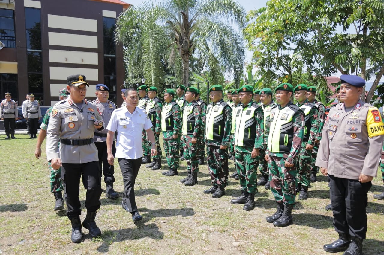 Walikota Wenny Gaib dan Kapolres Kotamobagu AKBP Irwanto meninjau kesiapan personel.