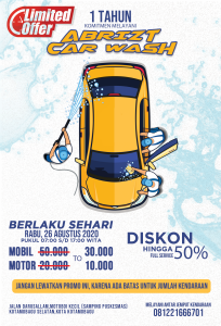 Dirinya juga menjelaskan bahwa promo cuci kendaraan di Abrizt car wash ini hanya berlaku satu hari yakni, Rabu, 26 Agustus 2020.