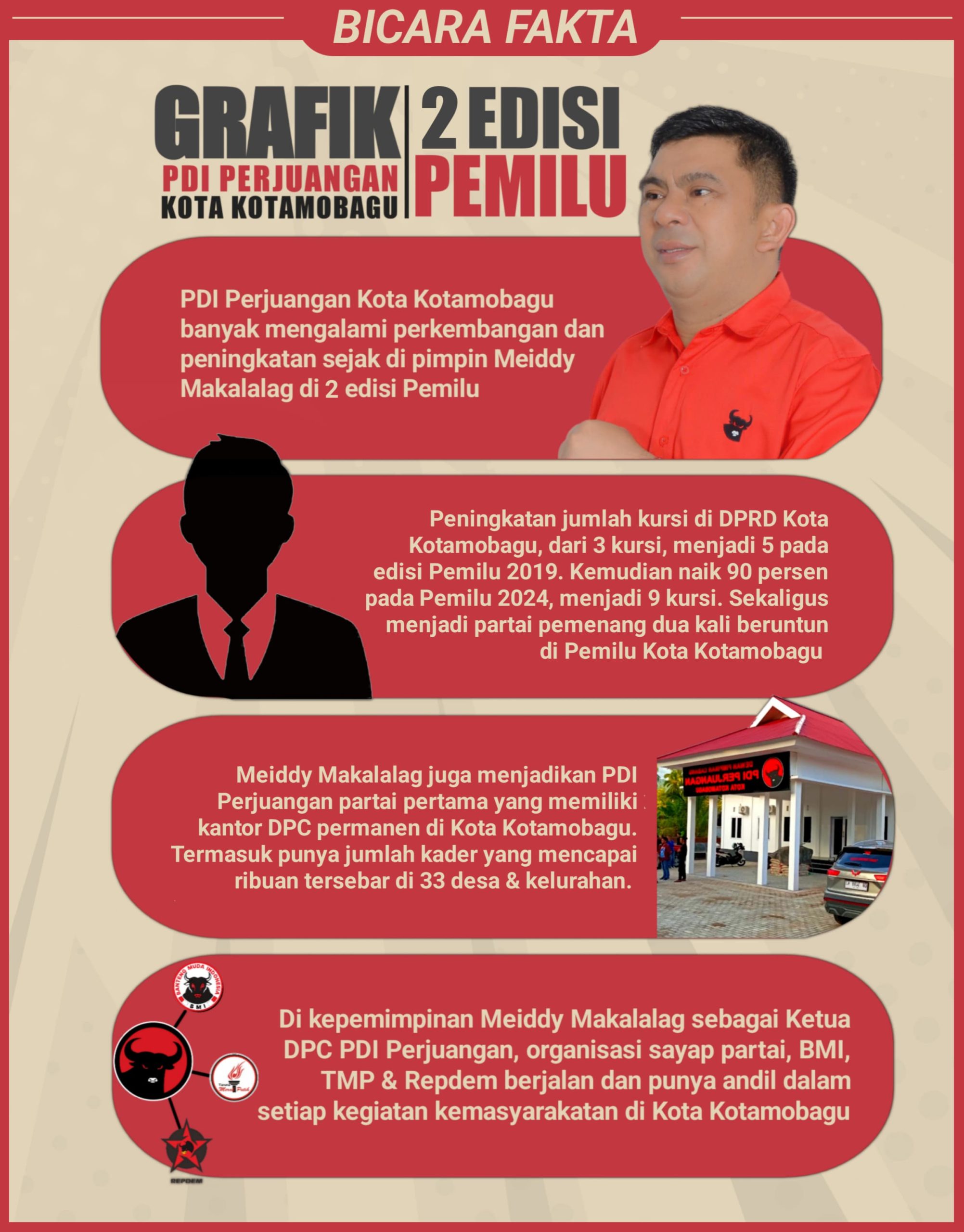 KRONIK TOTABUAN – Ketua DPC PDIP Kotamobagu, Meiddy Makalalag, sangat diinginkan kader mulai dari Anak Ranting, Ranting, PAC, dan DPC untuk dicalonkan sebagai calon walikota pada Pilkada serentak November 2024 mendatang.