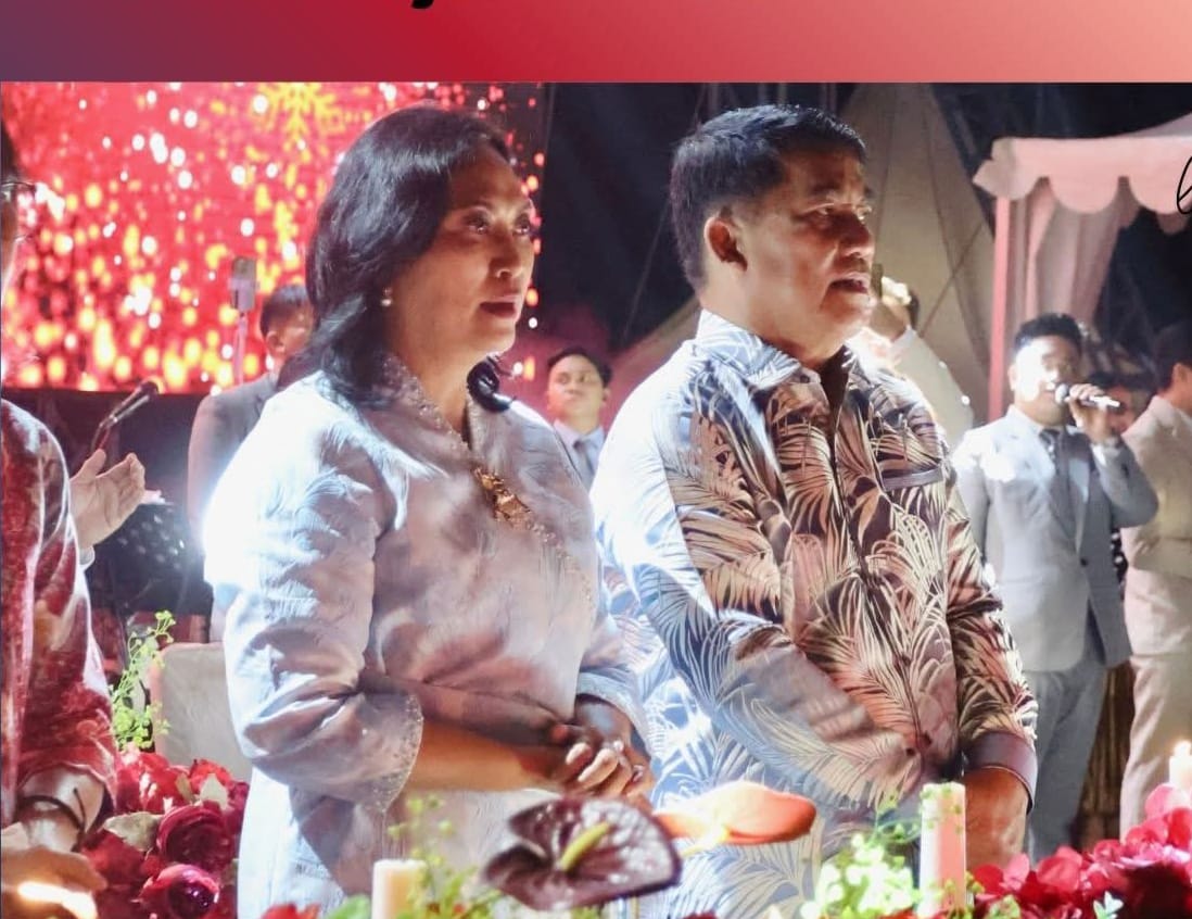 MANADO, kroniktotabuan.com – Gubernur Sulawesi Utara, Yulius Selvanus, bersama Ketua TP-PKK, Anik Yulius Selvanus, menghadiri Ibadah Perayaan Natal Gereja Tiberias Indonesia di Kawasan Megamas Manado, Rabu 10 Desember 2025.