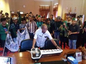 BOLMONG– Puluhan aktivis Himpunan Mahasiswa Islam (HMI) Cabang Bolaang Mongondow Raya (BMR) menggelar aksi damai di kantor DPRD Bolmong, Rabu (6/12/2017).
