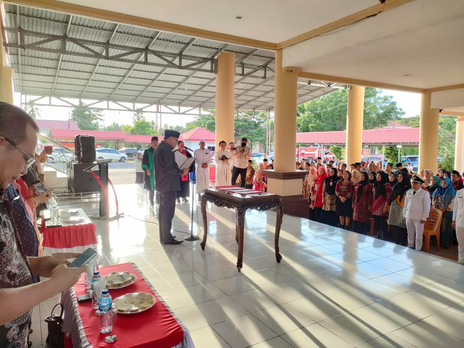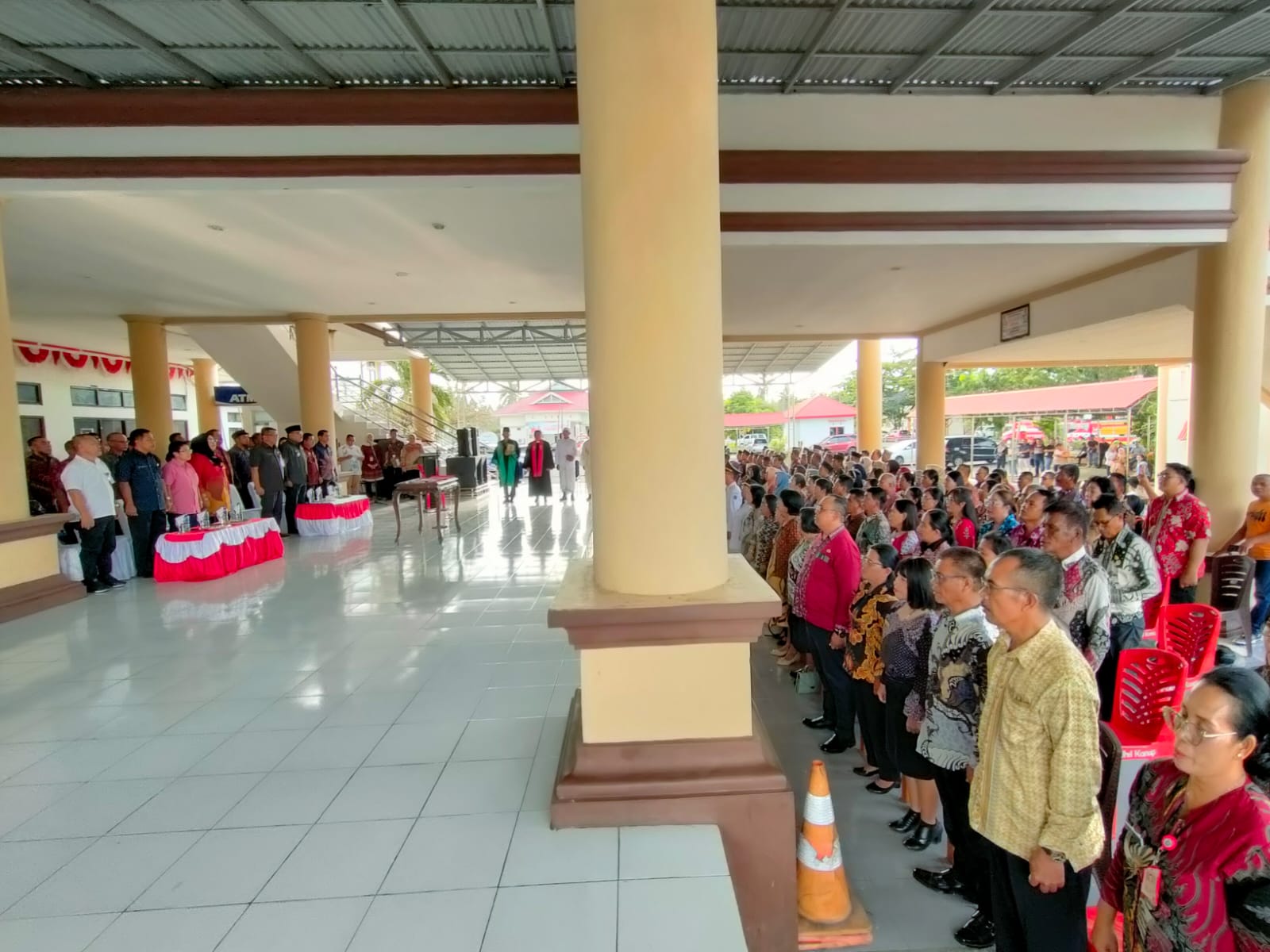 Kegiatan yang digelar di pelataran Kantor Bupati Bolmong tersebut pun turut dihadiri oleh Sekda Bolmong Abdullah Mokoginta, para Asisten, serta Kepala OPD.