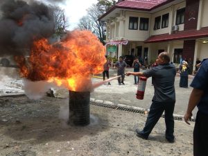 Selain simulasi, TRC juga melakukan sosialisasi tata cara menggunakan alat pemadam dan upaya penyelamatan diri di ruangan sidang. Selain TRC, peserta simulasi juga terdiri dari hakim dan pegawai PN.
