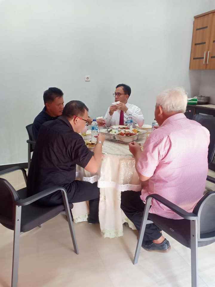 Pun Walikota Ir Hj Tatong Bara, Wakil Walikota (Wawali) Nayodo Koerniawan SH, Sekretaris Kota (Sekkot) Ir Hi Sande Dodo MT, serta sejumlah pejabat teras Pemerintah Kota (Pemkot) Kotamobagu, juga ikut makan siang di kediaman Ketua DPRD Kotamobagu.