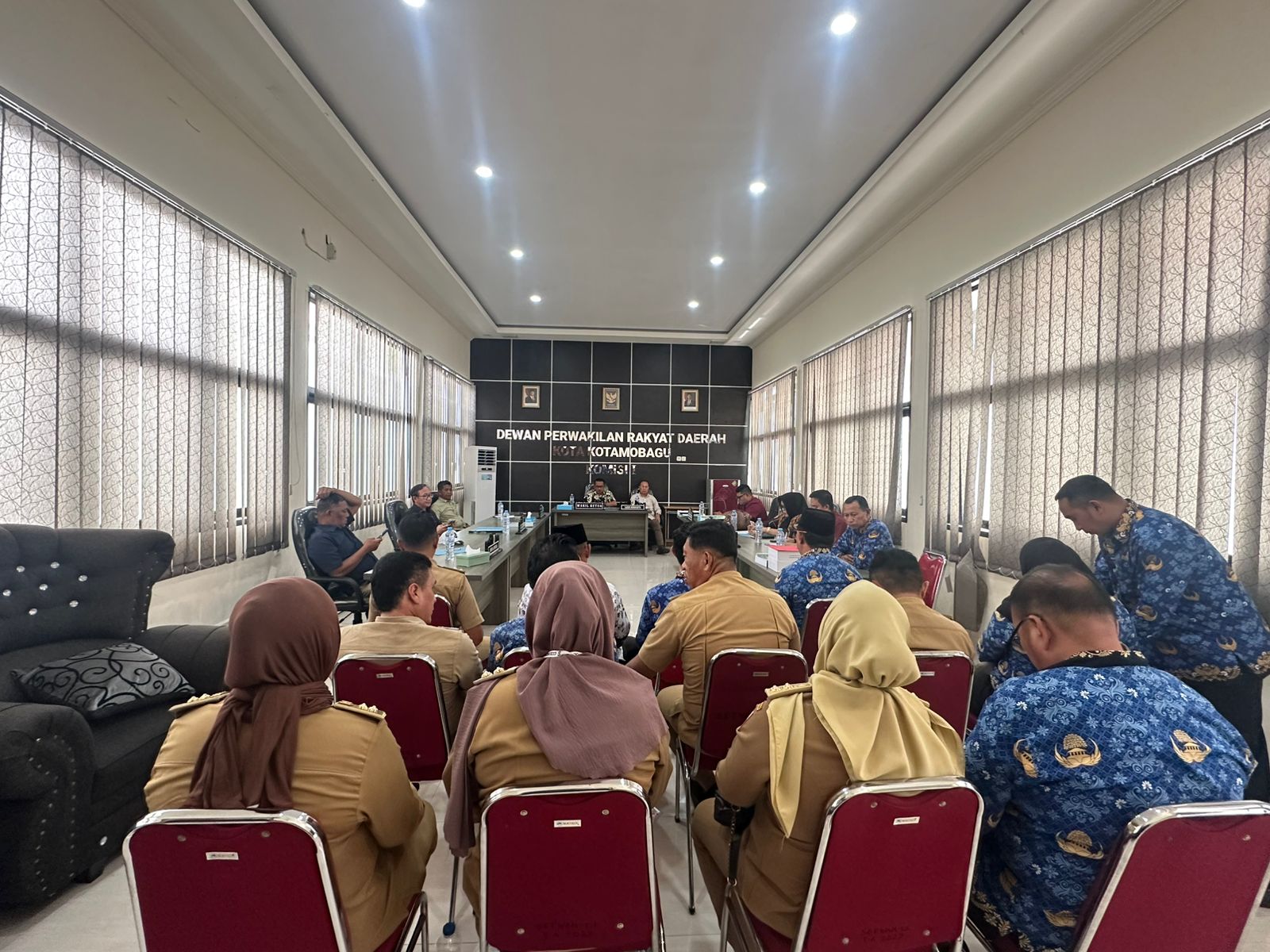 Dari pihak eksekutif, hadir Asisten I Bidang Pemerintahan Setda Kotamobagu, Nasli Paputungan, yang ikut memberikan penjelasan terkait agenda pembahasan.