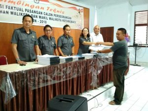 Daftar dukungan yang akan diverifikasi faktual sudah diserahkan KPU Kotamobagu kepada PPK dan PPS, Senin (11/12/2017) tadi sore di aula kantor KPU. Verifkasi faktual mulai dilakukan Selasa (12/12/2017) esok.