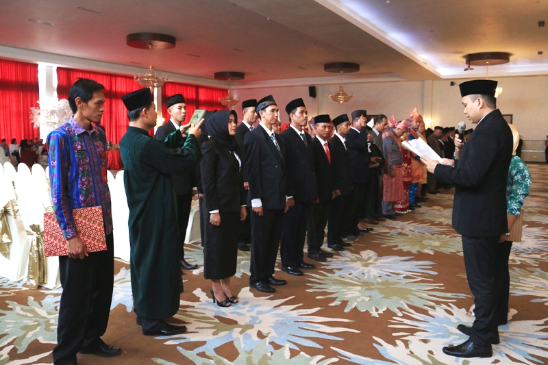 KOTAMOBAGU– 12 komisioner Panitia Pengawas Kecamatan (Panwascam) se-Kotamobagu dilantik Ketua Panwaslu DR Musly Lewu Mokoginta SH MH, Kamis (9/11/2017), di Sutanraja Hotel.