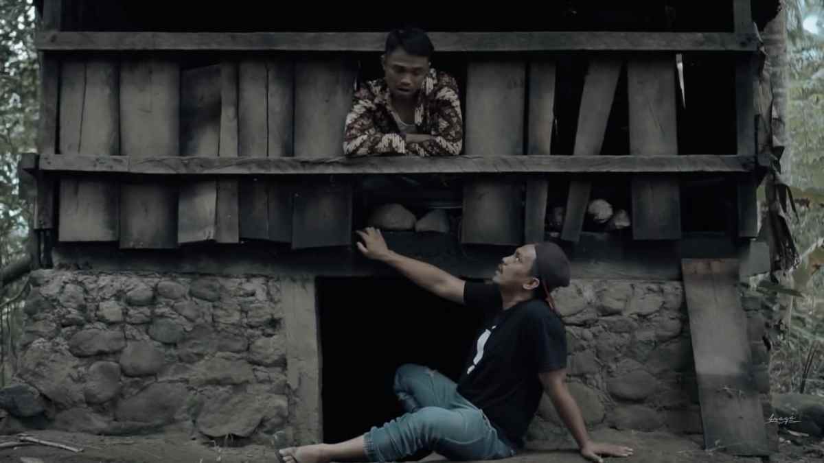 Mata kamera berwarna mendung itu bergerak lambat. Ia menangkap cahaya luar yang menyusup di antara renggang dinding papan yang keropos. Di sana kita lihat nyiru tergantung entah kapan terakhir dipakai, tudung saji yang mungkin tak berisi, serta ceret air dengan tutup sewarna kuning telur. Di luar terdengar ciap-ciap anak ayam mencari ibunya. Sementara, pemilik dapur dengan jilbab hitam sibuk mencari letak suaminya. “Apakah kamu melihat Lengkebong?” Tanya sosok itu tepat ke arah penonton. Dalam adegan ini, saya langsung ingat Dora the Explorer. Meski Dora jelas-jelas tidak berkumis.