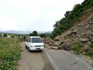 “Memang di lokasi ini sering terjadi longsor namun hari ini materialnya cukup banyak, ” katanya.