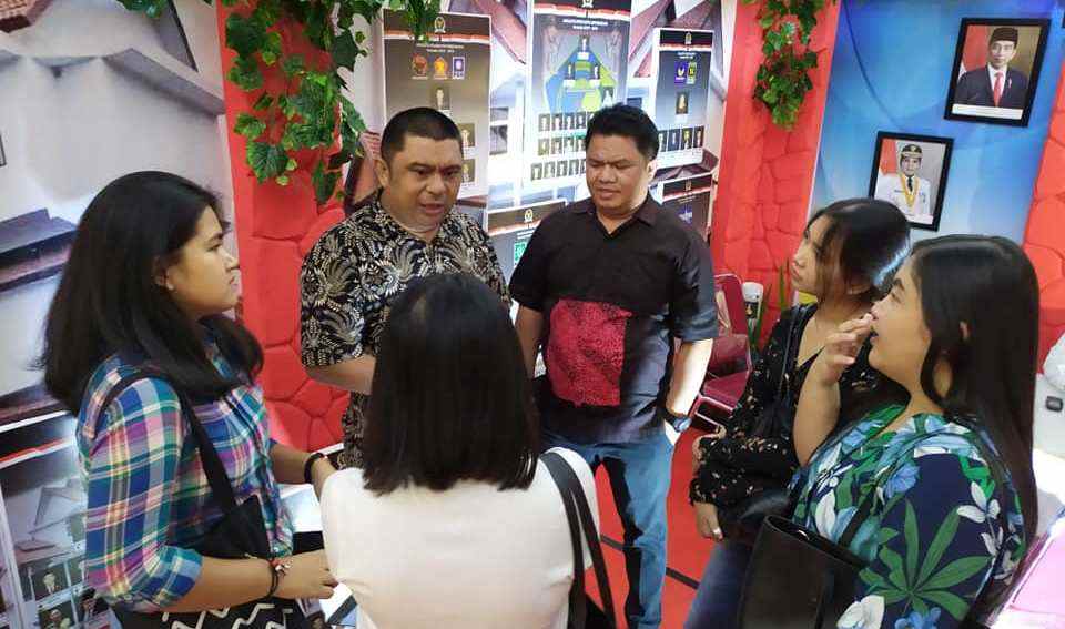 Di stand pameran milik DPRD Kotamobagu, Mekal dan SJM kedatangan tamu dari mahasiswi Fisip Unsrat Manado.