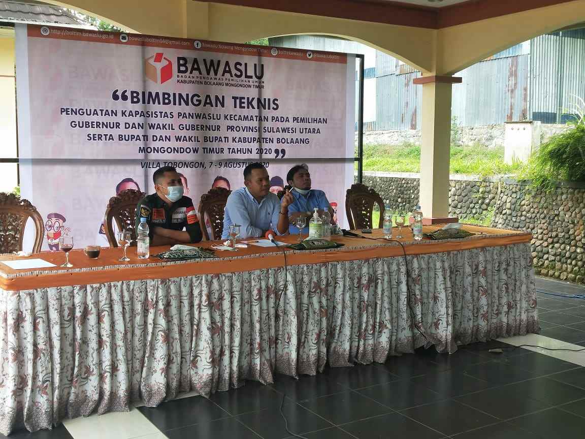 penguatan kapasitas Panitia Pengawas Pemilu (Panwaslu) Kecamatan, pada Pemilihan Gubernur dan Wakil Gubernur Provinsi Sulut, serta Bupati dan Wakil Bupati Boltim tahun 2020, bertempat di Wisata Villa Tobongon Adventure, Sabtu (8/8/2020).