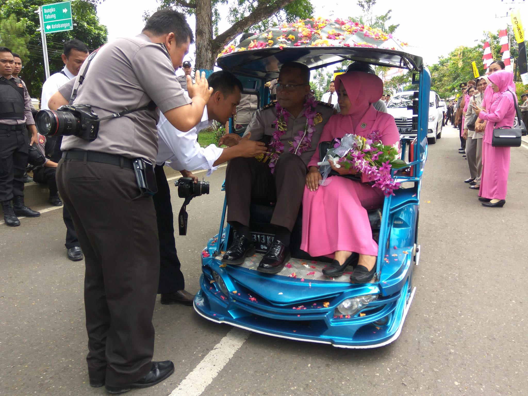 Di gerbang ke luar halaman Mapolres, Faisol dan istri dijemput kendaraan becak motor (bentor).