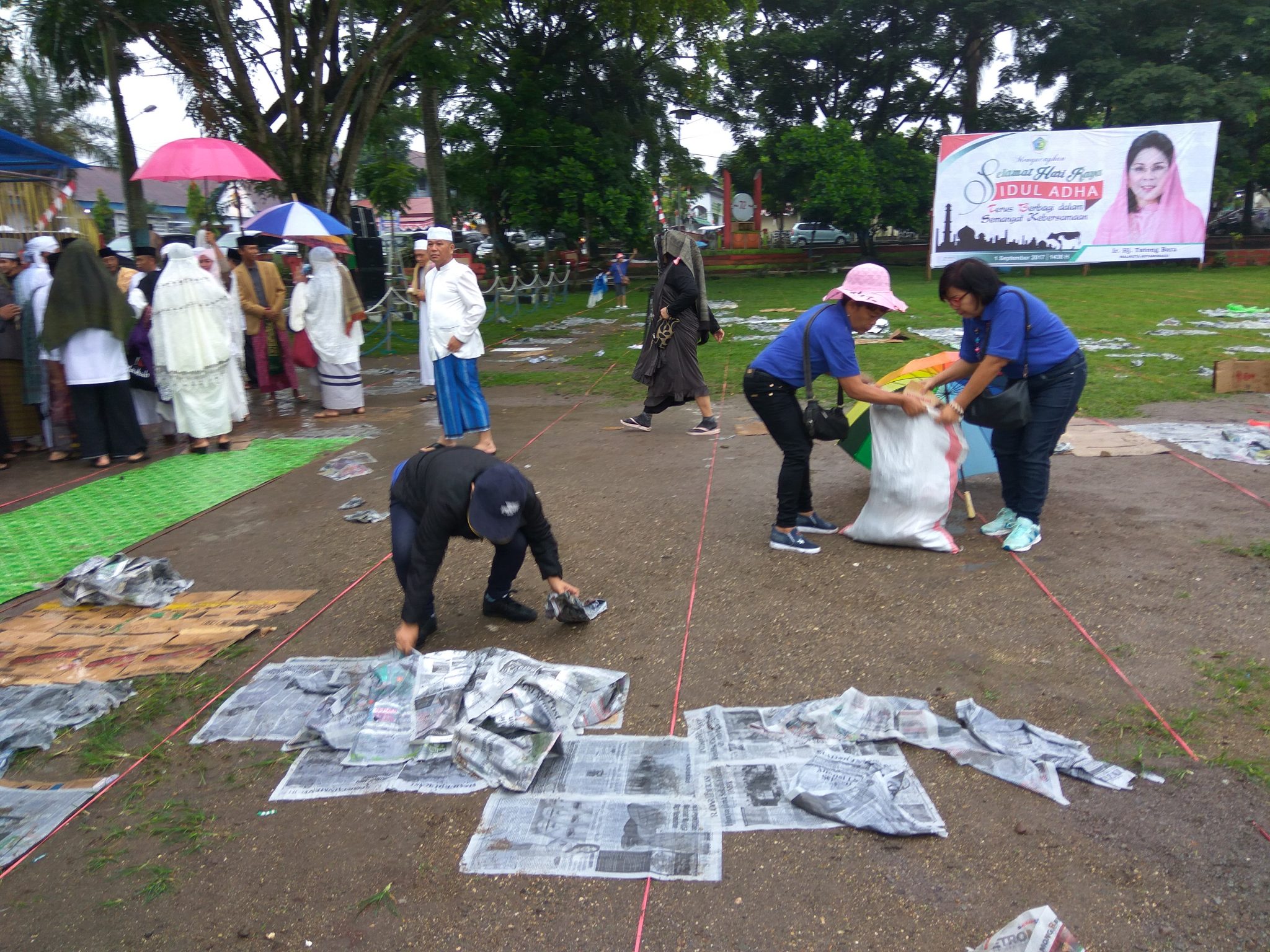Tak hanya dari pemuda lintas agama yang melakukan penjagaan saat pelaksanaan salat Idul Adha. Ormas perempuan yang mengatasnamakan Wanita Katolik Raja Cabang Kotamobagu, melakukan pembersihan area lapangan yang menjadi lokasi pelaksanaan salat.