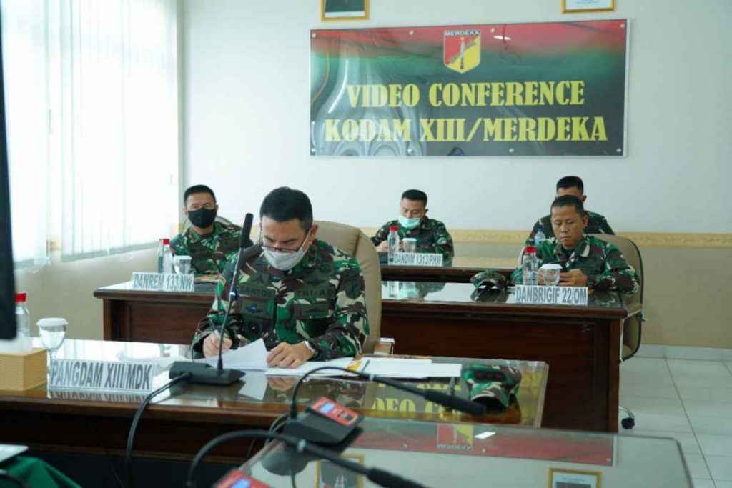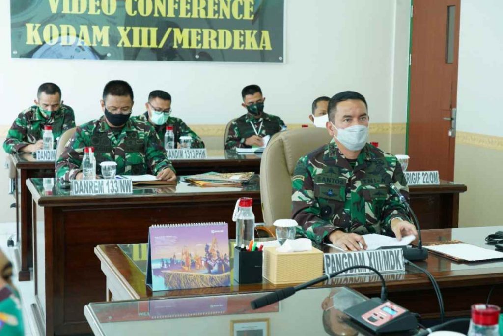 Video converence tersebut melibatkan seluruh petinggi dijajaran TNI, baik yang ada di Pusat maupun di Daerah, termasuk Pangdam XIII/Merdeka.